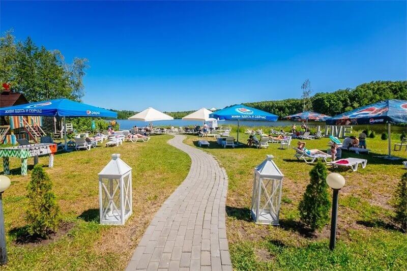 На территории есть спа-комплекс, сауна, хаммам, русская баня, бассейн, ресторан, кафе, детская игровая площадка и мини-зоопарк. Летом здесь оборудованный песчаный пляж, водные аттракционы и прогулки на лодках, а зимой — каток с музыкой и огнями, где можно взять напрокат коньки, лыжи, санки, ледянки и снегоходы. Для детей есть детские площадки и прокат спортинвентаря. В любое время года на красивом берегу озера можно порыбачить. На территории есть несколько павильонов с принадлежностями для барбекю.