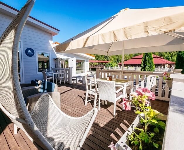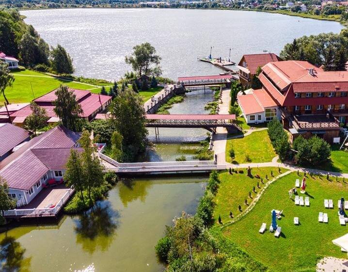 Корпуса и коттеджи расположены непосредственно у воды, что придает особую атмосферу отдыха на природе.