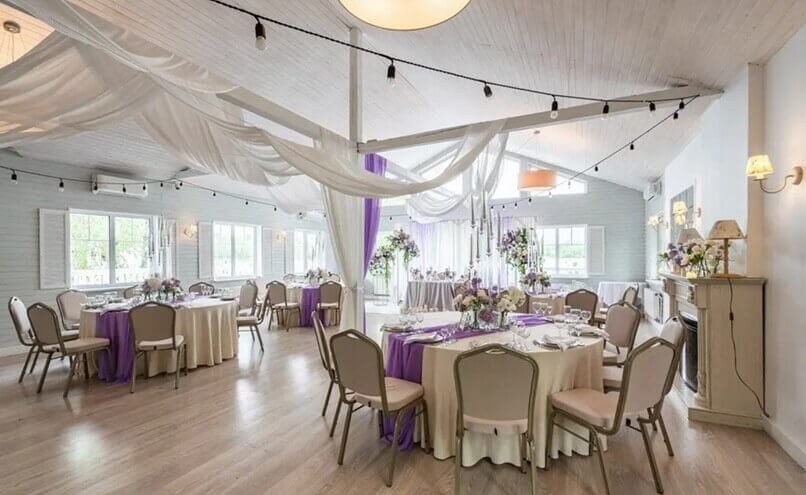 Ресторан на воде отличается продуманной планировкой с различными зонами для проведения крупных мероприятий от 40 до 150 человек. Зал оформлен в чистых, светлых тонах и имеет открытую веранду с видом на озеро.